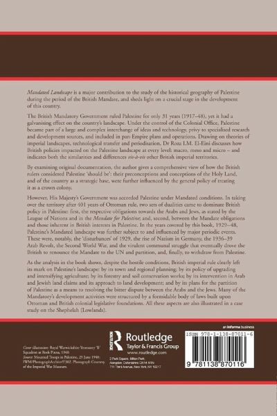 'In this award-wining author's ground-breaking study, an incisive, highly documented analysis is made of the galvanising changes wrought to Mandate Palestine by the British rule in town planning, agriculture, forestry land, the partition plans and a case study.' 'This book is a major contribution to research on British Palestine and will interest those in Middle East, history, geography, development and colonial/postcolonial studies.'