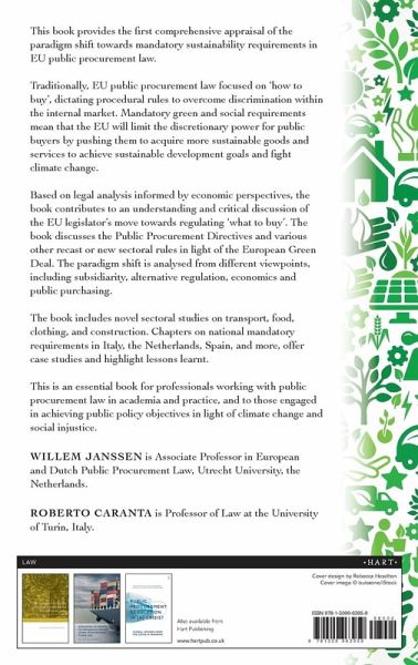 This book provides the first comprehensive appraisal of the paradigm shift towards mandatory sustainability requirements in EU public procurement law. Traditionally, EU public procurement law focused on 'how to buy', dictating procedural rules so that public buyers in the Member States did not discriminate against suppliers and service providers from other Member States. Mandatory green and social requirements mean that, with a view to achieving sustainable development goals and mitigating climate change, the EU will limit this discretionary power for public buyers, pushing them to acquire more sustainable goods and services. Based on legal analysis informed by economic perspectives, the book aims to contribute to an understanding and critical discussion of the EU legislator's move towards regulating 'what to buy'. The book discusses the role of the Public Procurement Directives in relation to this paradigm shift, as well as various other sectoral legislative instruments that have been revamped or newly introduced in light of the European Green Deal. The paradigm shift is analysed from different perspectives, including subsidiarity, alternative regulation, economics and public purchasing. The book includes novel sectoral studies on transport, food, clothing, and construction, discussing how change is taking place and what its major challenges are for the future. Chapters on Italy, the Netherlands, Spain, and more, offer case studies of Member States that have already introduced mandatory requirements and highlight lessons learnt. This is an essential book for professionals working with public procurement law in academia and practice, and to those engaged in achieving public policy objectives in light of climate change and social injustice.
