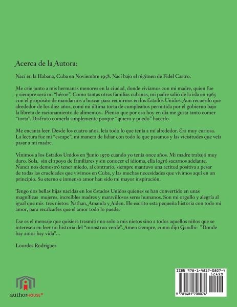 Mandy y su Abuela compartían un vínculo muy especial al igual que con sus primos Nathan y Aiden. Con sus imaginaciones ilimitadas ellos jugaban constantemente. Abuela siempre les leía y contaba historias sobre un horrible monstruo verde de la isla donde ella nació. Este monstruo robó las Navidades, alimentos y juguetes a los niños de Cuba pero más importante aún, les robó su libertad. En uno de sus tantos sueños, Mandy con sus primos Nathan y Aiden y sus mejores amigos, Katie y Kenny salieron al bosque para liberar a los niños y la gente de Cuba. Después de luchar contra los guardias y usando sus poderes mágicos lograron capturar el monstruo verde. Juntos y con todo su amor transformaron el monstruo verde en una ranita inocente la cual desapareció en el bosque. Niños salieron de todas partes del bosque para celebrar bailando y cantando mientras lágrimas de alegría le corrían por sus pequeños rostros.