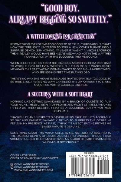 A witch seeking connection... If something ever seems too good to be true, it probably is. That's how the "friendly" invitation to join a new coven turned into a surprise demon summoning. At least it wasn't a virgin sacrifice. Then I really would have been screwed-and not in the way they plan for with the succubus they've bound. When I help free her from the bindings and offer her a ride back to work, things get even weirder. She tells me she wants to see me again. This captivating woman wants to see me-a nerdy witch who spends his free time playing D&D. There's no way she means it. Because that's definitely too good to be true. Still, there's no way I can resist the opportunity to spend more time with a goddess like her. A succubus with a soft heart... Nothing like getting summoned by a bunch of cultists to ruin your night. These creeps trapped me and won't let me leave until I "feed on their desires". I may be a succubus, but I'm not that desperate. Thankfully, an unexpected savior helps free me. He's adorable. So shy and earnest, valiantly trying to suppress the desire he feels in my presence. At first, I think it's an act. But he proves his sweet nature is genuine. Something about this witch calls to me. Not just to take him to the darkest depths of desire and see him undone-though that sounds fun. But to let myself open my scarred heart to someone who might not crush it. Maneater is a cozy, high-heat monster romance novella set in the 1980s featuring a lanky cinnamon roll witch MMC and a curvy, confident succubus FMC. This novella is a prequel to the upcoming novel, Behold Her, but both can be read as stand-alone stories.