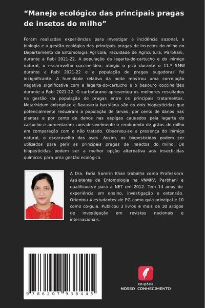 Foram realizadas experiências para investigar a incidência sazonal, a biologia e a gestão ecológica das principais pragas de insectos do milho no Departamento de Entomologia Agrícola, Faculdade de Agricultura, Parbhani, durante a Rabi 2021-22. A população da lagarta-do-cartucho e do inimigo natural, o escaravelho coccinelídeo, atingiu o pico durante o 11.º SMW durante a Rabi 2021-22 e a população de pragas sugadoras foi insignificante. A humidade relativa da noite mostrou uma correlação negativa significativa com a lagarta-do-cartucho e o besouro coccinelídeo durante a Rabi 2021-22. O carbofurano apresentou os melhores resultados na gestão da população de pragas entre os principais tratamentos. Metarhizium anisopliae e Beauveria bassiana são os dois biopesticidas que potencialmente reduziram a população de larvas, por cento de danos nas plantas e por cento de danos nas espigas causados pela lagarta do cartucho e aumentaram consideravelmente o rendimento de grãos de milho em comparação com o não tratado. Observou-se a presença do inimigo natural, o escaravelho das aves. Assim, os biopesticidas podem ser utilizados para gerir as principais pragas de insectos do milho. Os biopesticidas podem ser a melhor opção alternativa aos insecticidas químicos para uma gestão ecológica.