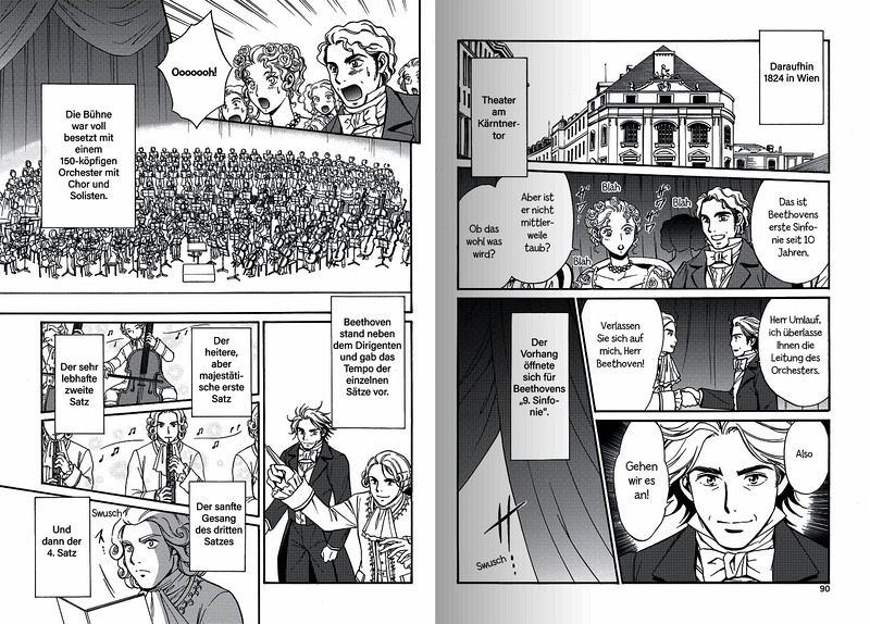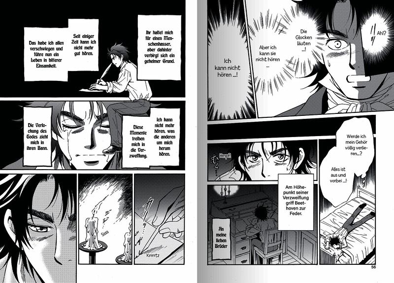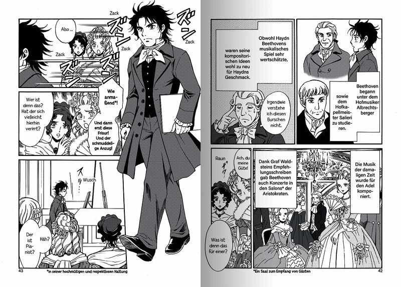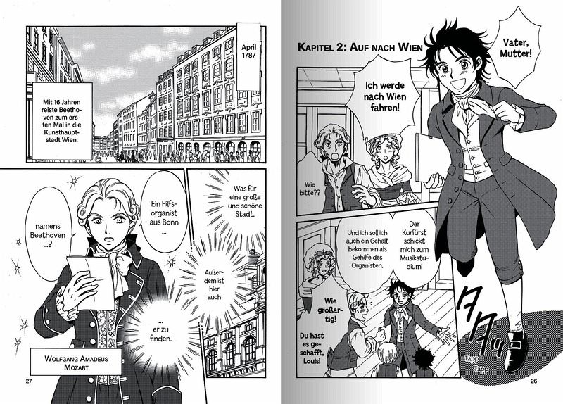 Diese Reihe präsentiert das Leben historischer Persönlichkeiten aus Politik, Kunst und Wissenschaft in einem künstlerisch ausgereiften und informationsreichen Manga-Format. Spannend und humorvoll lassen die Titel den Leser an den Höhen und Triumphen und Niederlagen teilhaben und vermitteln Einblicke in Kultur und Gesellschaft vergangener Epochen. Anhänge mit zusätzlichem Info- und Kartenmaterial runden die Titel ab.Als Ludwigs Vater sich in den Kopf setzt, aus dem talentierten kleinen Sohn einen zweiten Mozart zu machen, scheint ihm jedes Mittel recht zu sein. Glücklicherweise gelingt es anderen Lehrern und Erziehern, ihn zu fördern, zu einer eigenen Tonsprache zu verhelfen und zu einem der gefeiertsten und meistgespielten Komponisten zu machen. Doch der Junge mit der schwachen Gesundheit trägt von den autoritären Erziehungsmethoden des Vaters seelische Wunden davon, die ihn sein ganzesLeben begleiten werden und zu einem schwierigen, jähzornigen Mann machen, der sich mehr und mehr aus der Gesellschaft zurückzieht. Begleiten wir Ludwig van Beethoven von den Kindertagen bis zu seinen Spätjahren als erfolgreicher, doch verbitterter Maestro in Wien.Die Reihe erscheint erstmals in deutscher Sprache und wird fortgesetzt.