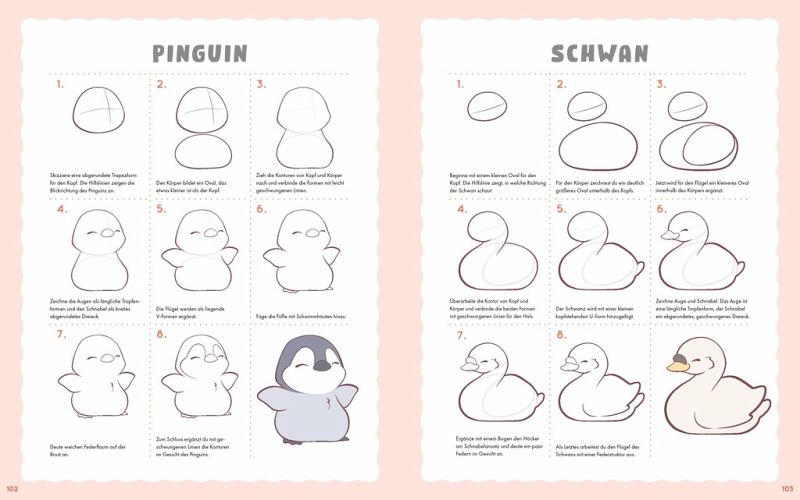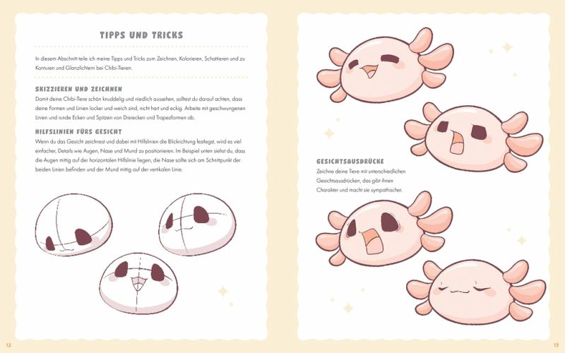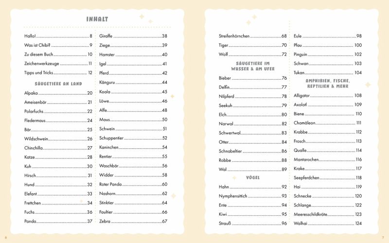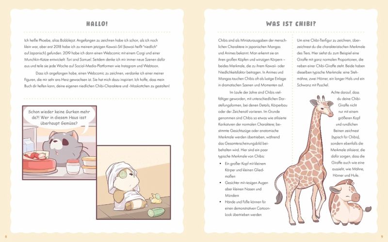 In Mangas und Animes sind Chibis süße, kindliche Darstellungen der Charaktere. Sie haben einen kleinen Körper mit großem Kopf und extra großen Augen zum Verlieben. Das trifft auch auf alle 75 Tiere in diesem Buch zu. Die Illustratorin Phoebe Im begeistert auf Instagram seit 2018 unter dem Namen @bobblejot mit ihrem eigens entwickelten Stil, der auch außerhalb der Mangawelt viele Fans hat. Im Buch zeigt sie dir ihre putzige Tierwelt und gibt nützliche Tipps und Tricks, wie du liebenswerte Charaktere gestaltest. So meisterst du das Nachzeichnen der Anleitungen im Handumdrehen.
