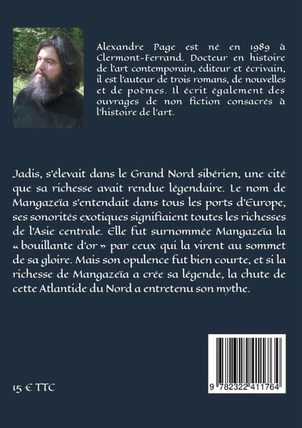 Jadis s'élevait dans le Grand Nord sibérien, une cité que sa richesse avait rendue légendaire. Le nom de Mangazeïa s'entendait dans tous les ports d'Europe ; ses sonorités exotiques signifiaient toutes les richesses de l'Asie centrale. Elle fut surnommée Mangazeïa la "bouillante d'or" par ceux qui la virent au sommet de sa gloire. Mais son opulence fut bien courte, et si la richesse de Mangazeïa a crée le mythe, la chute de cette Atlantide du Nord a entretenu la légende.Avec Mangazeïa: légende du Nord, Alexandre Page raconte de façon poétique et mythique la chute de l'une des plus riches cités de jadis. Perdue aux confins du pays Nenets, dans les glaces sibériennes, elle connut des décennies de gloire avant de sombrer et de s'effacer des mémoires, son emplacement même s'oubliant avec les siècles. Sa redécouverte dans les années 30 du XXIe s. n'a pas encore levé tous les mystères de sa destruction aussi complète que soudaine.