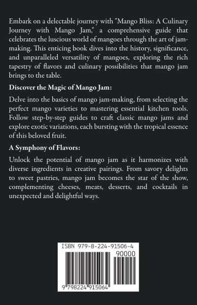 Embark on a delectable journey with "Mango Bliss: A Culinary Journey with Mango Jam," a comprehensive guide that celebrates the luscious world of mangoes through the art of jam-making. This enticing book dives into the history, significance, and unparalleled versatility of mangoes, exploring the rich tapestry of flavors and culinary possibilities that mango jam brings to the table. Discover the Magic of Mango Jam: Delve into the basics of mango jam-making, from selecting the perfect mango varieties to mastering essential kitchen tools. Follow step-by-step guides to craft classic mango jams and explore exotic variations, each bursting with the tropical essence of this beloved fruit. A Symphony of Flavors: Unlock the potential of mango jam as it harmonizes with diverse ingredients in creative pairings. From savory delights to sweet pastries, mango jam becomes the star of the show, complementing cheeses, meats, desserts, and cocktails in unexpected and delightful ways.
