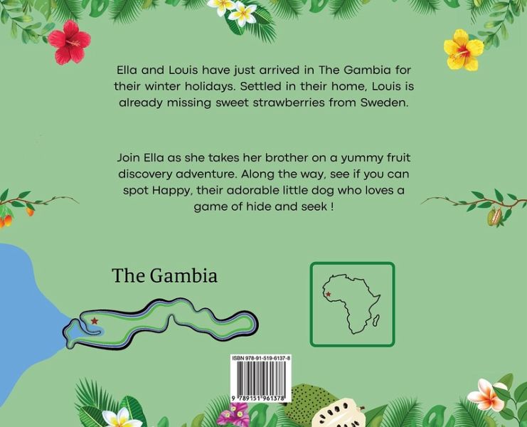 Ella & Louis have just arrived in The Gambia for their winter holidays. Settling at home, Louis is already missing sweet strawberries from Stockholm. Join Ella as she takes her brother on a yummy fruit tasting tour and discover fruits native to West Africa that you might have never seen before! Along the way, see if you can find Happy, their adorable little dog who loves a game of hide and seek! A light-hearted journey of discovery with beautiful illustrations and photographs. This charming book shares some of the beauty found in the smallest country in Africa.