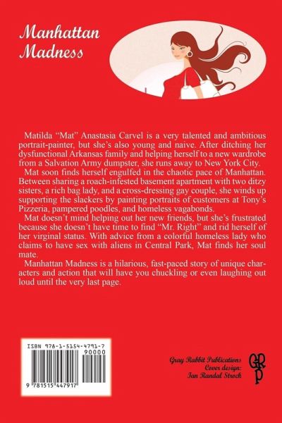 Matilda "Mat" Anastasia Carvel is a very talented and ambitious portrait-painter, but she's also young and naive. After ditching her dysfunctional Arkansas family and helping herself to a new wardrobe from a Salvation Army dumpster, she runs away to New York City. Mat soon finds herself engulfed in the chaotic pace of Manhattan. Between sharing a roach-infested basement apartment with two ditzy sisters, a rich bag lady, and a cross-dressing gay couple, she winds up supporting the slackers by painting portraits of customers at Tony's Pizzeria, pampered poodles, and homeless vagabonds. Mat doesn't mind helping out her new friends, but she's frustrated because she doesn't have time to find "Mr. Right" and rid herself of her virginal status. With advice from a colorful homeless lady who claims to have sex with aliens in Central Park, Mat finds her soul mate. Manhattan Madness is a hilarious, fast-paced story of unique characters and action that will have you chuckling or even laughing out loud until the very last page. About the Author: A.R. Alan is a born storyteller. Even in first grade, she became notorious for scribbling stories on scraps of paper. When she wasn't doing that, she'd have her nose buried in a book, soaking up other peoples' stories. Reading and writing stories became lifelong passions, and she's currently finishing her eleventh novel. Worldwide travel and a career that brought her in touch with a never-ending stream of interesting personalities and celebrities fanned her already fertile imagination over the years, and validate the vivid, multi-dimensional characters that people her novels. She is also an avid environmentalist, and played a major role in saving a New Jersey/New York mountain range from developers. It will remain open space forever. Previously writing under the name of B.B. Carter, she has had many short stories, poems, and five novels published. She has also penned comedic material for Joan Rivers.