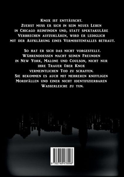 Knox ist enttäuscht. Zuerst muss er sich in sein neues Leben in Chicago reinfinden und, statt spektakuläre Verbrechen aufzuklären, wird er lediglich mit der Aufklärung eines Vermisstenfalles betraut. So hat er sich das nicht vorgestellt.Währenddessen macht seinen Freunden in New York, Malone und Coulson, nicht nur ihre Trauer über Knox vermeintlichen Tod zu schaffen. Sie bekommen es auch mit mehreren kniffligen Mordfällen und einer nicht identifizierbaren Wasserleiche zu tun.