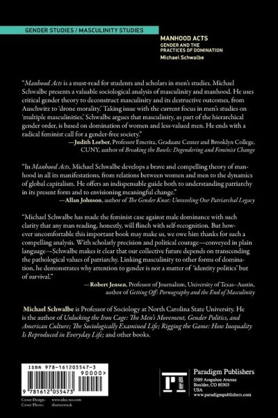 In Manhood Acts Michael Schwalbe offers a new perspective on the social construction of manhood and its relationship to male domination. Schwalbe argues that study of masculinity has lost touch with its feminist roots and has been seduced by the politically safe notion of 'multiple masculinities'. Manhood Acts delineates the practices males use to construct 'women' and 'men' as unequal categories. Schwalbe reclaims the radical feminist insights that gender is a field of domination, not a field of play, and that manhood is fundamentally about exerting or resisting control. Manhood Acts arrives at the conclusion that abolishing gender as a system of oppression will require more than transgressive self-presentation. It will be necessary to end the exploitive economic relationships that necessitate manhood itself.