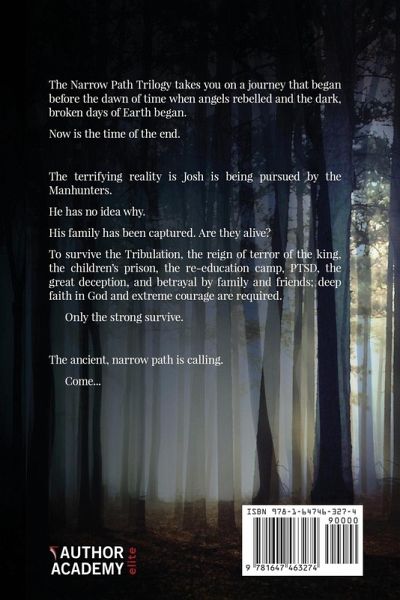 We live in a world spiraling through time to an appointed meeting with the One who set everything in motion. The family is being challenged on nearly every front-by the media, politically, educationally, by crumbling morals, and by those who have lost the ability to discern truth or see God. Many search for answers, often wandering in the darkness, not knowing where to find peace and safety, and the blind are leading the blind into a ditch. There are eternal truths we can find if we seek them-if we can recognize them. The Narrow Path Trilogy weaves threads from before the dawn of time, when angels rebelled and the dark, broken days of Earth began. In order for a marriage and a family to survive the tribulation, the reign of terror of the Emperor, the children's prison, the re-education camp, trans-humanism, the horrors of war, PTSD, super soldiers, genetic engineering, artificial intelligence, the great deception and falling away, betrayal of family and friends and the love of many growing cold; deep faith in God and extreme courage are required. Manhunt is the first book in the Narrow Path Trilogy It will lead you on a journey through an ancient garden towards a celestial city, using the genre of Christian fiction to remind us of the principles we know are true. It allows us to remember them, to find them, and ultimately takes us on the narrow path towards our eternal home. God did not promise it would be easy. He said the days ahead would be the worst the people of Earth have ever seen. But He did tell us He would never leave us or forsake us. He alone has the words of life. He bids us follow. Once on this path you will never be the same. Come...