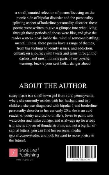a poetry sampler about the months my manic episode was the most extreme it has been to date, and the things that went on in my head during it all. this time period included dissociative episodes, personality splitting, sinful behaviors, and drug addiction. a peak into what my life was like, and the thoughts i had during that time.