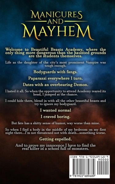 I never considered myself special... far from it. But when my father told me I'm marrying a demon, I did the next best thing. I opted to attend a supernatural academy to escape. Next thing I know, I'm whisked away to a place filled with shifters and vampires. There is no welcome committee with my father being the Master Vampire in town. Instead, I'm an outcast and on everyone's hit list. When I find a dead body in my room, I definitely know I'm in over my head. It seems everyone is set to remind me of my place... including the three devastatingly handsome wolf shifters who are paying me too much attention. And falling for them is asking for trouble when they are my family's direct enemy. I know I should escape, but that's not an option with what is waiting for me beyond the academy walls, so I have to fight for what I want. Fate has a crappy sense of humor, way worse than mine, and it seems my destiny is filled with danger and temptations. Prepare yourself for side-splitting hillariousness and super hot Wolf shifters in this slow-burn romance. The completed Beautiful Beasts series Manicures and Mayhem Diamonds and Demons Hexes and Hounds Secrets and Shadows Passions and Protectors Ancients and Anarchy Tricks or Temptations