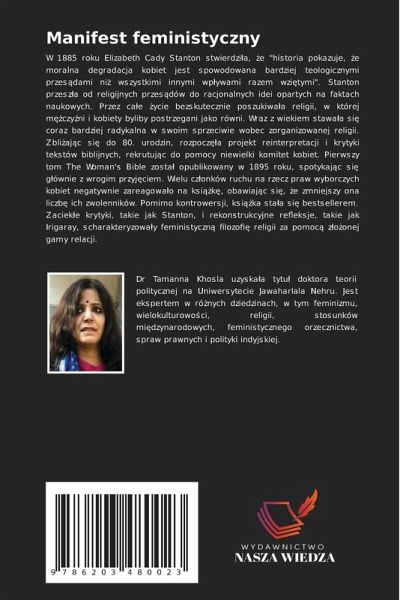 W 1885 roku Elizabeth Cady Stanton stwierdzi¿a, ¿e "historia pokazuje, ¿e moralna degradacja kobiet jest spowodowana bardziej teologicznymi przes¿dami ni¿ wszystkimi innymi wp¿ywami razem wzi¿tymi". Stanton przesz¿a od religijnych przes¿dów do racjonalnych idei opartych na faktach naukowych. Przez cäe ¿ycie bezskutecznie poszukiwäa religii, w której m¿¿czy¿ni i kobiety byliby postrzegani jako równi. Wraz z wiekiem stawäa si¿ coraz bardziej radykalna w swoim sprzeciwie wobec zorganizowanej religii. Zbli¿aj¿c si¿ do 80. urodzin, rozpocz¿¿a projekt reinterpretacji i krytyki tekstów biblijnych, rekrutuj¿c do pomocy niewielki komitet kobiet. Pierwszy tom The Woman's Bible zostä opublikowany w 1895 roku, spotykaj¿c si¿ g¿ównie z wrogim przyj¿ciem. Wielu cz¿onków ruchu na rzecz praw wyborczych kobiet negatywnie zareagowäo na ksi¿¿k¿, obawiaj¿c si¿, ¿e zmniejszy ona liczb¿ ich zwolenników. Pomimo kontrowersji, ksi¿¿ka stäa si¿ bestsellerem. Zaciek¿e krytyki, takie jak Stanton, i rekonstrukcyjne refleksje, takie jak Irigaray, scharakteryzowäy feministyczn¿ filozofi¿ religii za pomoc¿ z¿o¿onej gamy relacji.