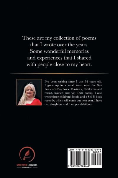 I've been writing since I was 14 years old. I grew up in a small town near the San Francisco Bay Area. Martinez, California, and raised, trained, and Vet Tech horses. I also wrote three children's books and a Sci-Fi book recently, which will come out next year. I have two daughters and five grandchildren.