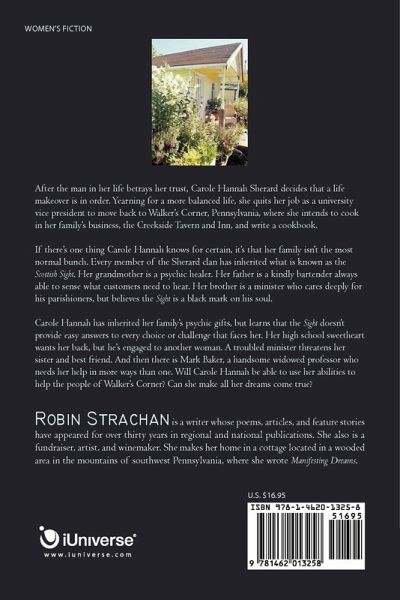 After the man in her life betrays her trust, Carole Hannah Sherard decides that a life makeover is in order. Yearning for a more balanced life, she quits her job as a university vice president to move back to Walker's Corner, Pennsylvania, where she intends to cook in her family's business, the Creekside Tavern and Inn, and write a cookbook. If there's one thing Carole Hannah knows for certain, it's that her family isn't the most normal bunch. Every member of the Sherard clan has inherited what is known as the Scottish Sight. Her grandmother is a psychic healer. Her father is a kindly bartender always able to sense what customers need to hear. Her brother is a minister who cares deeply for his parishioners, but believes the Sight is a black mark on his soul. Carole Hannah has inherited her family's psychic gifts, but learns that the Sight doesn't provide easy answers to every choice or challenge that faces her. Her high school sweetheart wants her back, but he's engaged to another woman. A troubled minister threatens her sister and best friend. And then there is Mark Baker, a handsome widowed professor who needs her help in more ways than one. Will Carole Hannah be able to use her abilities to help the people of Walker's Corner? Can she make all her dreams come true?