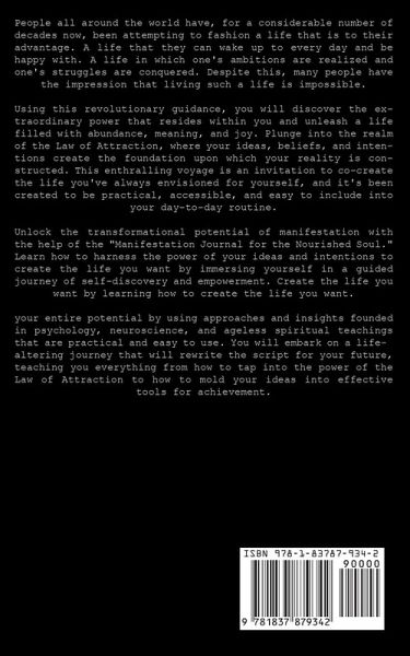 People all around the world have, for a considerable number of decades now, been attempting to fashion a life that is to their advantage. A life that they can wake up to every day and be happy with. A life in which one's ambitions are realized and one's struggles are conquered. Despite this, many people have the impression that living such a life is impossible. Using this revolutionary guidance, you will discover the extraordinary power that resides within you and unleash a life filled with abundance, meaning, and joy. Plunge into the realm of the Law of Attraction, where your ideas, beliefs, and intentions create the foundation upon which your reality is constructed. This enthralling voyage is an invitation to co-create the life you've always envisioned for yourself, and it's been created to be practical, accessible, and easy to include into your day-to-day routine. Unlock the transformational potential of manifestation with the help of the "Manifestation Journal for the Nourished Soul." Learn how to harness the power of your ideas and intentions to create the life you want by immersing yourself in a guided journey of self-discovery and empowerment. Create the life you want by learning how to create the life you want. your entire potential by using approaches and insights founded in psychology, neuroscience, and ageless spiritual teachings that are practical and easy to use. You will embark on a life-altering journey that will rewrite the script for your future, teaching you everything from how to tap into the power of the Law of Attraction to how to mold your ideas into effective tools for achievement.