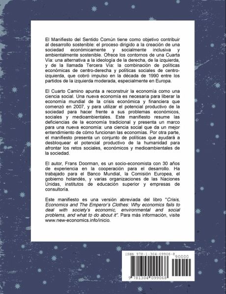 El Manifiesto de Sentido Común tiene como objetivo contribuir al desarrollo sostenible: el proceso dirigido a la creación de una sociedad económica y socialmente inclusivo y ecológicamente sostenible. Ofrece los contornos de una Cuarta Vía, una estrategia para resolver la crisis económica y financiera que comenzó en 2007, utilizando el potencial productivo de la sociedad para solucionar sus problemas económicos, sociales y medioambientales. Este manifiesto resume las deficiencias de la economía tradicional y presenta un marco para una nueva economía y un conjunto de políticas que ayudarán a utilizar el potencial productivo de la humanidad para afrontar sus retos sociales, económicos y medioambientales. Este manifiesto es una versión abreviada del libro Crisis, Economía y ropa del emperador. ¿Por qué la economía no logra hacer frente a problemas de la sociedad económica, ambiental y social, y qué hacer al respecto. Para más información, visite www.nuevo-economics.info/inicio.
