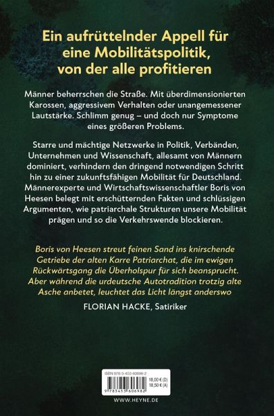 Männer beherrschen die Straße. Mit überdimensionierten Karossen, aggressivem Verhalten oder unangemessener Lautstärke. Das ist durch die Verkehrsstatistik gut belegt, aber dennoch nur Symptom eines größeren Problems. Starre und mächtige Netzwerke in Politik, Behörden, Verbänden, Unternehmen und Wissenschaft, allesamt von Männern dominiert, verhindern den dringend notwendigen Schritt hin zu einer zukunftsfähigen Mobilität für Deutschland. Männerexperte und Wirtschaftswissenschaftler Boris von Heesen belegt mit erschütternden Fakten und schlüssigen Argumenten, wie patriarchale Strukturen unsere Mobilität prägen und so die Verkehrswende blockieren. Ein aufrüttelnder Appell für eine sinnvolle Verkehrspolitik, von der alle profitieren würden.