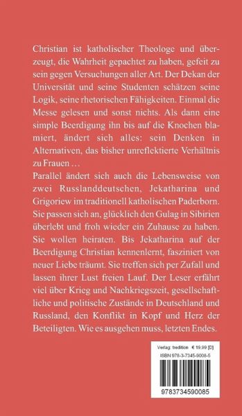 Christian ist katholischer Theologe und überzeugt, die Wahrheit gepachtet zu haben, gefeit zu sein gegen Versuchungen aller Art. Der Dekan der Universität und seine Studenten schätzen seine Logik, seine rhetorischen Fähigkeiten. Einmal die Messe gelesen und sonst nichts. Als dann eine simple Beerdigung ihn bis auf die Knochen blamiert, ändert sich alles: sein Denken in Alternativen, das bisher unreflektierte Verhältnis zu Frauen ...