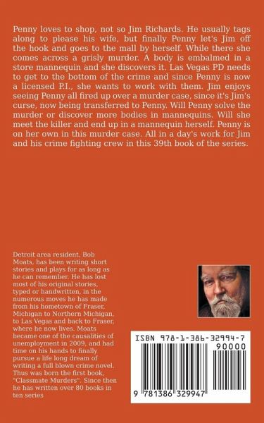 Penny loves to shop, not so Jim Richards. He usually tags along to please his wife, but finally Penny let's Jim off the hook and goes to the mall by herself. While there she comes across a grisly murder. A body is embalmed in a store mannequin and she discovers it. Las Vegas PD needs to get to the bottom of the crime and since Penny is now a licensed P.I., she wants to work with them. Jim enjoys seeing Penny all fired up over a murder case, since it's Jim's curse, now being transferred to Penny. Will Penny solve the murder or discover more bodies in mannequins. Will she meet the killer and end up in a mannequin herself. Penny is on her own in this murder case. All in a day's work for Jim and his crime fighting crew in this 39th book of the series.