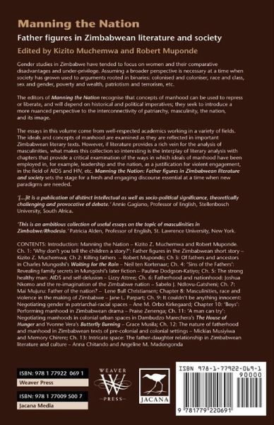 Gender studies in Zimbabwe have tended to focus on women and their comparative disadvantages and under-privilege. Assuming a broader perspective is necessary at a time when society has grown used to arguments rooted in binaries: colonised and coloniser, race and class, sex and gender, poverty and wealth, patriotism and terrorism, etc. The editors of Manning the Nation recognise that concepts of manhood can be used to repress or liberate, and will depend on historical and political imperatives; they seek to introduce a more nuanced perspective to the interconnectivity of patriarchy, masculinity, the nation, and its image. The essays in this volume come from well-respected academics working in a variety of fields. The ideals and concepts of manhood are examined as they are reflected in important Zimbabwean literary texts. However, if literature provides a rich vein for the analysis of masculinities, what makes this collection so interesting is the interplay of literary analysis with chapters that provide a critical examination of the ways in which ideals of manhood have been employed in, for example, leadership and the nation, as a justification for violent engagement, in the field of AIDS and HIV, etc. Manning the Nation: Father figures in Zimbabwean literature and society sets the stage for a fresh and engaging discourse essential at a time when new paradigms are needed.