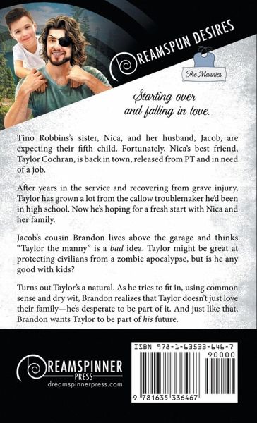 Starting over and falling in love. Tino Robbins's sister, Nica, and her husband, Jacob, are expecting their fifth child. Fortunately, Nica's best friend, Taylor Cochran, is back in town, released from PT and in need of a job. After years in the service and recovering from grave injury, Taylor has grown a lot from the callow troublemaker he'd been in high school. Now he's hoping for a fresh start with Nica and her family. Jacob's cousin Brandon lives above the garage and thinks "Taylor the manny" is a bad idea. Taylor might be great at protecting civilians from a zombie apocalypse, but is he any good with kids? Turns out, Taylor's a natural. As he tries to fit in, using common sense and dry wit, Brandon realizes that Taylor doesn't just love their family-he's desperate to be part of it. And just like that, Brandon wants Taylor to be part of his future.