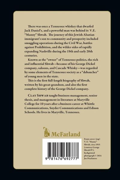 There was once a Tennessee whiskey that dwarfed Jack Daniel's, and a powerful man was behind it: V.E. "Manny" Shwab. Until now, virtually nothing has been written about either. Their story is one of a Jewish Alsatian immigrant's dream of finding community and prosperity in the New world; of smuggling during the Civil War; of the raging, sometimes fatal, battle against Prohibition; and of the wild side of rapidly growing Nashville during the 19th and early 20th centuries. "Manny" Shwab was a Tennessean known as the "owner" of Tennessee politics, and--because of his George Dickel company, saloons, and Cascade Whisky--the "debaucherer of more young men than anyone else in the state." He was also one of Tennesee's richest and most powerful men for four decades. This is the first full-length biography of V. E. Shwab, written by his great-grandson, and also the first complete history of the George Dickel company.