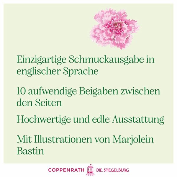 Einzigartige Schmuckausgabe in englischer Sprache des beliebten KlassikersMit zehn aufwendig gestalteten Extras als Beilage zwischen den BuchseitenHochwertige Ausstattung mit Leseband, Einband in Leinenoptik, Hoch- und GoldprägungZauberhafte Illustrationen der bekannten Künstlerin Marjolein Bastin