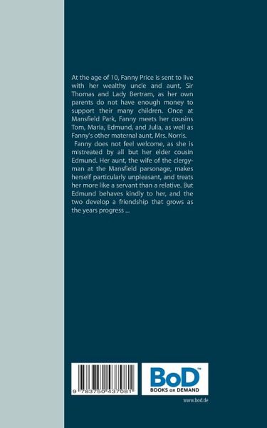 At the age of 10, Fanny Price is sent to live with her wealthy uncle and aunt, Sir Thomas and Lady Bertram, as her own parents do not have enough money to support their many children. Once at Mansfield Park, Fanny meets her cousins Tom, Maria, Edmund, and Julia, as well as Fanny's other maternal aunt, Mrs. Norris. Fanny does not feel welcome, as she is mistreated by all but her elder cousin Edmund. Her aunt Mrs. Norris, the wife of the clergyman at the Mansfield parsonage, makes herself particularly unpleasant, and treats her more like a servant than a relative. Edmund behaves kindly to her, and the two develop a friendship that grows as the years progress ...
