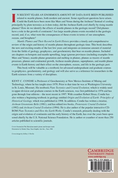 Mantle Plumes and Their Record in Earth History provides a timely and comprehensive review of the origin and history of mantle plumes throughout geologic time. The book describes the new and exciting results of the last few years, and integrates an immense amount of material from the fields of geology, geophysics, and geochemistry that bear on mantle plumes. Included are chapters on hotspots and mantle upwelling, large igneous provinces (including examples from Mars and Venus), mantle plume generation and melting in plumes, plumes as tracers of mantle processes, plumes and continental growth, Archean mantle plumes, superplumes, mantle plume events in Earth history, and their effect on the atmosphere, oceans, and life.