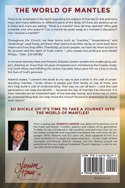 The World of Mantles There is an emphasis in the Spirit regarding the subject of mantles in this end-time hour, and many believers in different parts of the Body of Christ are picking up on it. More and more are asking: "What is a mantle? How do they operate? Who gets a mantle, and who doesn't? Can a mantle be given away at a minister's discretion? Can I receive a mantle?" Throughout the Church, we hear terms such as "mantles," "impartations," and "anointings" used freely, yet there often seems to be little clarity on what each term means and how they differ. Thankfully, as God's people, we have His Word to turn to for answers and the Spirit of Truth within "...who reveals the profound and hidden things..." (Dan. 2:22 NASB)! In his book Mantles Past and Present, Roberts Liardon tackles this challenging subject, drawing on more than 40 years of experience in ministering the Gospel, studying God's Word, and fulfilling the divine mandate Jesus gave him as a boy to study the lives of God's generals. Roberts states, "I present this book as my way to put a brick in the wall of understanding mantles. I invite others to please put their bricks on top of mine, and let's help build a wall of understanding. That way we can all learn - and the next generations can reap the benefit - because the day of mantles has returned. It is here. Mantles are an important part of the last-day revival, and there has to come an understanding that can help move the Church forward in preparation for Jesus' soon return!" So buckle up! It's time to take a journey into the world of mantles!