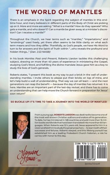 The World of Mantles There is an emphasis in the Spirit regarding the subject of mantles in this end-time hour, and many believers in different parts of the Body of Christ are picking up on it. More and more are asking: "What is a mantle? How do they operate? Who gets a mantle, and who doesn't? Can a mantle be given away at a minister's discretion? Can I receive a mantle?" Throughout the Church, we hear terms such as "mantles," "impartations," and "anointings" used freely, yet there often seems to be little clarity on what each term means and how they differ. Thankfully, as God's people, we have His Word to turn to for answers and the Spirit of Truth within "...who reveals the profound and hidden things..." (Dan. 2:22 NASB)! In his book Mantles Past and Present, Roberts Liardon tackles this challenging subject, drawing on more than 40 years of experience in ministering the Gospel, studying God's Word, and fulfilling the divine mandate Jesus gave him as a boy to study the lives of God's generals. Roberts states, "I present this book as my way to put a brick in the wall of understanding mantles. I invite others to please put their bricks on top of mine, and let's help build a wall of understanding. That way we can all learn - and the next generations can reap the benefit - because the day of mantles has returned. It is here. Mantles are an important part of the last-day revival, and there has to come an understanding that can help move the Church forward in preparation for Jesus' soon return!" So buckle up! It's time to take a journey into the world of mantles!