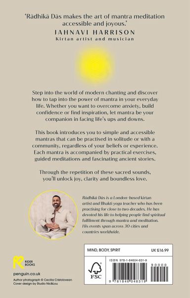 'Mantra Meditation is timeless and timely. Radhika Das has made an ancient method simple and accessible for our busy lives. Pick it up anytime, flick to any page and connect to yourself anywhere.' - JAY SHETTY Chanting is more than just words. In Mantra Meditation, renowned Kirtan artist Radhika Das introduces us to the world of modern chanting and reveals its profound origins, showing us that we do not need to be a good singer, a yoga practitioner, or a follower of any religion or set of beliefs to experience the extraordinary power of mantra. This book will guide you through relevant and accessible Vedic chants that can be practiced in solitude or with community and explores how you can integrate these powerful tools in your everyday life. Through the repetition of these sacred syllables, you'll tap into a state of joy, clarity and boundless love. Featuring practical exercises like simple postures, breathing techniques and meditations, Mantra Meditation will empower you to begin your mantra journey so you can unlock a true sense of inner peace and cultivate authentic spiritual growth.