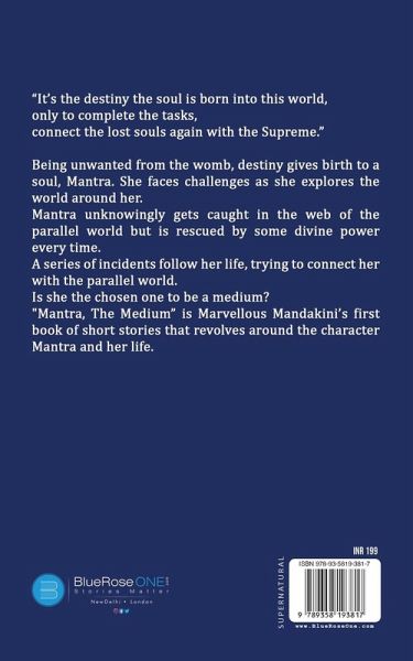 "It's the destiny the soul is born into this world, only to complete the tasks, connect the lost souls again with the Supreme." Being unwanted from the womb, destiny gives birth to a soul, Mantra. She faces the challenges as she explores the world around her.Mantra unknowingly gets caught in the web of the parallel world, but is rescued by some divine power every time.A series of incidents follow her life, trying to connect her with the parallel world...Is she the chosen one to be a Medium..."Mantra The Medium" is a Marvellous Mandakini's first book of short stories that revolves around the character Mantra and her life.