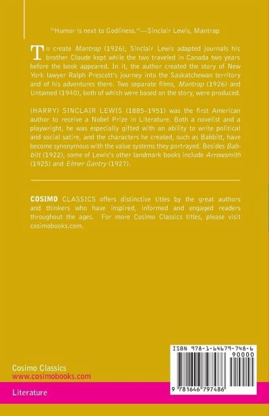 "Humor is next to Godliness." ¿ Sinclair Lewis, Mantrap To create Mantrap (1926), Sinclair Lewis adapted journals his brother Claude kept while the two traveled in Canada two years before the book appeared. In it, the author created the story of New York lawyer Ralph Prescott's journey into the Saskatchewan territory and of his adventures there. Two separate films, Mantrap (1926) and Untamed (1940), both of which were based on the story, were produced.