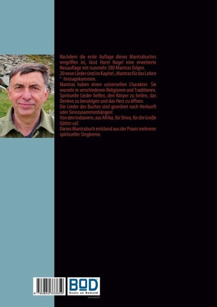 Nachdem die erste Auflage dieses Mantrabuches vergriffen ist, lasse ich eine erweiterte Neuauflage mit nunmehr 280 Mantras folgen. 20 neue Lieder sind im Kapitel "Mantras für das Leben" hinzugekommen.Mantras haben einen universellen Charakter. Sie wurzeln in verschiedenen Religionen und Traditionen. Spirituelle Lieder helfen, den Körper zu heilen, das Denken zu beruhigen und das Herz zu öffnen.Die Lieder des Buches sind geordnet nach Herkunft oder Sinnzusammenhängen: Von den Indianern, aus Afrika, für Shiva, für die Große Göttin usf.Dieses Mantrabuch entstand aus der Praxis unserer spirituellen Singkreise.