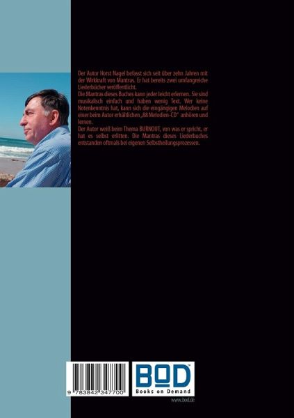 Der Autor Horst Nagel befasst sich seit über zehn Jahren mit der Wirkkraft von Mantras. Er hat bereits zwei umfangreiche Liederbücher veröffentlicht.Die Mantras dieses Buches kann jeder leicht erlernen. Sie sind musikalisch einfach und haben wenig Text. Wer keine Notenkenntnis hat, kann sich die eingängigen Melodien auf einer beim Autor erhältlichen "88 Melodien-CD" anhören und lernen.Der Autor weiß beim Thema BURNOUT, von was er spricht, er hat es selbst erlitten. Die Mantras dieses Liederbuches entstanden oftmals bei eigenen Selbstheilungsprozessen.