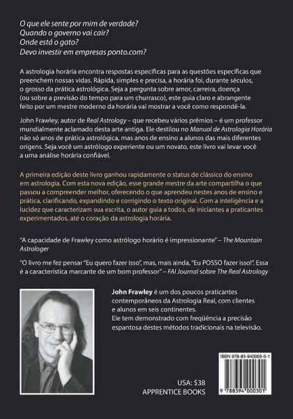 Astrologia horária é o ramo da astrologia que encontra respostas claras e precisas para perguntas específicas. Rápida e simples, a horária foi, durante séculos, o item mais valioso da caixa de ferramentas do astrólogo. Seja a pergunta sobre amor, carreira, doença (ou sobre a previsão do tempo para um churrasco), este guia claro e abrangente feito por um mestre moderno da horária vai mostrar a você como respondê-la. A primeira edição deste livro ganhou rapidamente o status de clássico do ensino em astrologia. Com esta nova versão, esse grande mestre da arte compartilha o que passou a compreender melhor, oferecendo o que aprendeu nestes anos de ensino e prática, clarificando, expandindo e corrigindo o texto original. Com a inteligência e a lucidez que caracterizam sua escrita, o autor guia a todos, de iniciantes a praticantes experimentados, até o coração da astrologia horária. "A capacidade de Frawley como astrólogo horário é impressionante" - The Mountain Astrologer.