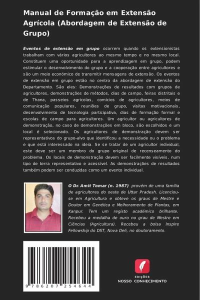 Eventos de extensão em grupo ocorrem quando os extensionistas trabalham com vários agricultores ao mesmo tempo e no mesmo local. Constituem uma oportunidade para a aprendizagem em grupo, podem estimular o desenvolvimento do grupo e a cooperação entre agricultores e são um meio económico de transmitir mensagens de extensão. Os eventos de extensão em grupo estão no centro da abordagem de extensão do Departamento. São eles: Demonstrações de resultados com grupos de agricultores, demonstrações de métodos, dias de campo, feiras distritais e de Thana, passeios agrícolas, comícios de agricultores, meios de comunicação populares, reuniões de grupo, visitas motivacionais, desenvolvimento de tecnologia participativa, dias de formação formal e escolas de campo para agricultores. Um agricultor ou agricultores de demonstração, no caso de demonstrações em bloco, são escolhidos e um local é selecionado. Os agricultores de demonstração devem ser representativos do grupo-alvo que identificou a necessidade ou o problema e que está interessado na ideia. Se se tratar de um agricultor individual, este deve ser um membro do grupo original de recenseamento do problema. Os locais de demonstração devem ser facilmente visíveis, num tipo de terra representativo e acessível. As demonstrações de resultados também podem ser conduzidas como um evento individual.