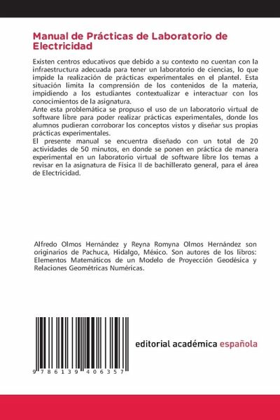 Existen centros educativos que debido a su contexto no cuentan con la infraestructura adecuada para tener un laboratorio de ciencias, lo que impide la realización de prácticas experimentales en el plantel. Esta situación limita la comprensión de los contenidos de la materia, impidiendo a los estudiantes contextualizar e interactuar con los conocimientos de la asignatura.Ante esta problemática se propuso el uso de un laboratorio virtual de software libre para poder realizar prácticas experimentales, donde los alumnos pudieran corroborar los conceptos vistos y diseñar sus propias prácticas experimentales.El presente manual se encuentra diseñado con un total de 20 actividades de 50 minutos, en donde se ponen en práctica de manera experimental en un laboratorio virtual de software libre los temas a revisar en la asignatura de Física II de bachillerato general, para el área de Electricidad.