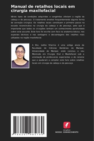 Vários tipos de condições adquiridas e congénitas afectam a região da cabeça e do pescoço. O tratamento envolve frequentemente alguma forma de correção cirúrgica. Os retalhos locais constituem o primeiro passo na escada reconstrutiva na cirurgia da cabeça e do pescoço, pelo que é importante que todos os cirurgiões tenham um conhecimento aprofundado sobre este assunto. Este livro foi escrito com foco na anatomia básica, nos aspectos técnicos e nas vantagens e desvantagens dos retalhos mais utilizados na região maxilofacial.