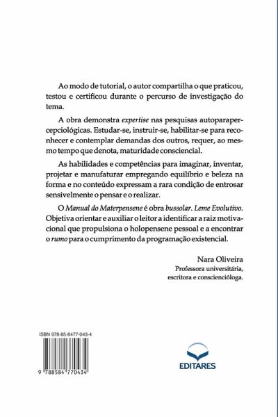 Ao modo de tutorialo autor compartilha o que praticoutestou e certificou durante o percurso de investigação do tema. A obra demonstra expertise nas pesquisas autoparapercepciológicas. Estudar-seinstruir-sehabilitar-se para reconhecer e contemplar