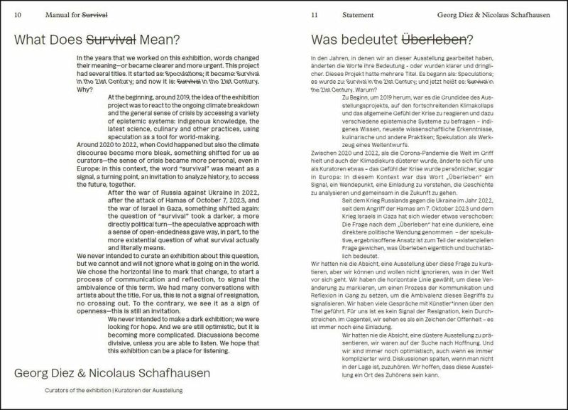 Überleben ist eine gemeinschaftliche Praxis. Wir können es nicht allein tun; wir brauchen einander. Wir brauchen Werkzeuge und Praktiken, die uns helfen, uns zu verbinden, zu verstehen, gemeinsam zu bauen, zu überleben in diesem Zeitalter der Klimakrise, des technologischen Umbruchs, des existenziellen Schmerzes. Wir brauchen Worte, Werte und Ideen, die über den menschlichen Raum hinausgehen. Wir müssen lernen; und wir müssen verlernen. Wir brauchen ein Handbuch fürs Überleben.