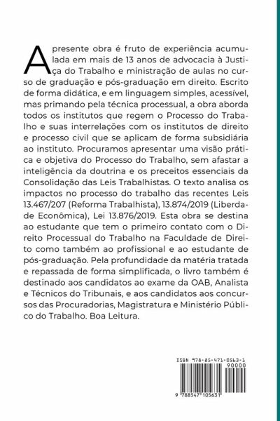 A presente obra é fruto de experiência acumulada em mais de 13 anos de advocacia à Justiça do Trabalho e ministração de aulas no curso de graduação e