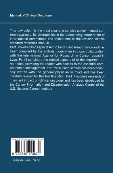 The continuing success of the VICC's Manual of Clinical Oncology and the continuing refinement of our educational objectives in cancer designed for graduating medical students and young practitioners, cou pled with significant additional knowledge in the cancer field have allIed to the decision to publish a Fourth Edition. The collaboration of the World Health Organization (WHO) and the Pan-American Health Orga nization (PAHO) in our international and regional conferences in cancer education and the development of courses using the Manual as a basic resource have aided further definition of the VICC's role in cancer educa tion throughout the world. Our Revision Committee believes that we have incorporated in this small volume most of the knowledge about cancer which is essential for all students and practioners to know and that we have done so in a clear and concise manner. A large proportion of the material presented herein is devoted to basic aspects, yet presented so that the clinical implications are clear. Although we do not feel that general physicians need to know minor details about all cancers, we feel it is particularly important to be somewhat thorough in our discussions of the more common cancers. We have omitted discussion of the rare cancers, and limited ourselves to the major concepts and princi ples of the less common cancers.