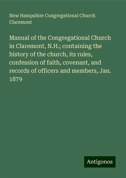Manual of the Congregational Church in Claremont, N.H.; containing the history of the church, its rules, confession of faith, covenant, and records of officers and members, Jan. 1879 - Claremont, New Hampshire Congregational Church
