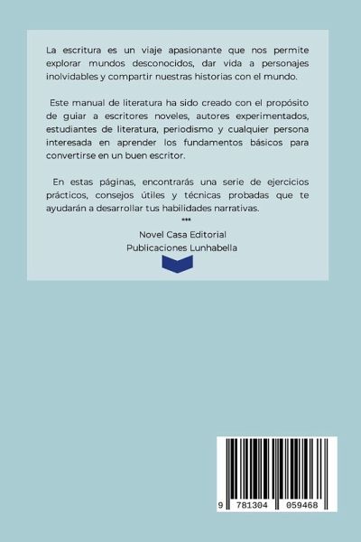 La escritura es un viaje apasionante que nos permite explorar mundos desconocidos, dar vida a personajes inolvidables y compartir nuestras historias con el mundo. Este manual de literatura ha sido creado con el propósito de guiar a escritores noveles, autores experimentados, estudiantes de literatura, periodismo y cualquier persona interesada en aprender los fundamentos básicos para convertirse en un buen escritor. En estas páginas, encontrarás una serie de ejercicios prácticos, consejos útiles y técnicas probadas que te ayudarán a desarrollar tus habilidades narrativas. Desde la creación de personajes y la estructuración de tramas, hasta la elección del estilo y el tono adecuados para tu obra, este libro te proporcionará las herramientas necesarias para llevar tus historias al siguiente nivel. La escritura no es solo una habilidad técnica, sino también un arte que requiere creatividad, imaginación y una profunda conexión con nuestras emociones y experiencias. A lo largo de este libro, te animamos a explorar nuevas ideas, a experimentar con diferentes estilos y a dejar volar tu imaginación. La escritura es una forma de expresión personal y única, y este manual te ayudará a encontrar tu propia voz literaria. Esperamos que este libro se convierta en una guía invaluable en tu camino como escritor. Ya seas un principiante que está dando sus primeros pasos en la creación literaria, un autor experimentado que busca perfeccionar su arte, o un estudiante que desea profundizar en el estudio de la literatura, este manual te ofrecerá el conocimiento y la inspiración necesarios para alcanzar tus objetivos. ¡Bienvenido al mundo de la escritura! Que este manual te acompañe en cada paso de tu viaje literario y te ayude a convertir tus sueños en realidad.