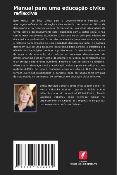 Este Manual de Ética Cívica para o Desenvolvimento introduz uma abordagem reflexiva da educação cívica centrada nos aspectos éticos da democracia e do desenvolvimento. O manual dá uma visão abrangente da forma como o desenvolvimento está relacionado com a justiça social e não com o mero crescimento económico. O livro ensina os princípios básicos da ética cívica e profissional. Estes são necessários para uma cidadania ativa e reflexiva na construção de uma sociedade democrática justa. Os autores defendem que só uma cidadania esclarecida pode garantir a eficiência e a eficácia das instituições públicas e profissionais. O livro aborda os temas da ética e da educação, dos valores e processos democráticos, do profissionalismo e da corrupção, do género e da justiça, da participação civil e da proteção dos direitos humanos. Embora o livro se centre na Tanzânia, oferece uma abordagem única à educação cívica e pode ser utilizado como material didático em todo o continente africano e não só. O livro também fornece exercícios relacionados e, portanto, pode ser usado como um guia de auto-estudo ou um manual do professor em educação cívica reflexiva.