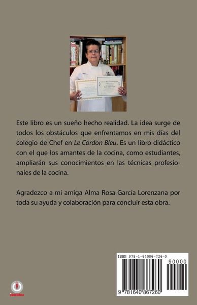 Este libro es un sueño hecho realidad. La idea surge de todos los obstáculos que enfrentamos en mis días del colegio de Chef en Le Cordon Bleu. Es un libro didáctico con el que los amantes de la cocina, como estudiantes, ampliarán sus conocimientos en las técnicas profesionales de la cocina. Agradezco a mi amiga Alma Rosa García Lorenzana por toda su ayuda y colaboración para concluir esta obra.