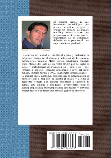 El objetivo del presente manual es orientar el diseño y evaluación de proyectos, basado en el manejo y utilización de herramientas metodológicas como el Marco Lógico, actualmente conocido como Manejo del Ciclo de Proyectos (PCM) por sus siglas en inglés, y metodologías de evaluación ex - ante y ex - post (proceso e impacto), aplicadas actualmente a nivel del sector público, empresa privada y ONG¿s nacionales e internacionales. El manual busca, asimismo, homogeneizar la estructuración de proyectos con el propósito de facilitar el análisis y la toma de decisiones respecto a su eventual aprobación y ejecución. El manual está dirigido a estudiantes; profesionales; técnicos; líderes; empresarios; microempresarios; autoridades; y, personas emprendedoras que desean incurrir en la gestión de proyectos.